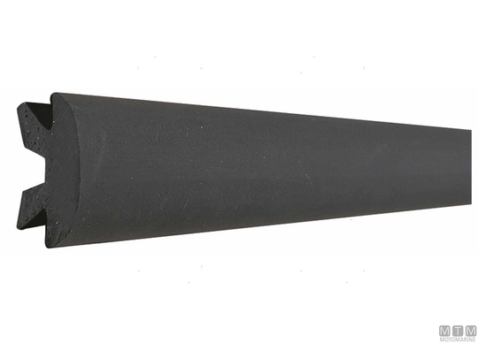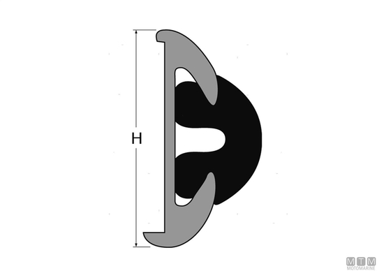 Profil za odbijače z anodiziranim aluminijastim drgnim trakom. Aluminijasti drgni trak je v 4-metrskih palicah in ga je treba izbrati glede na želeno višino (H mm). Črn ali bel PVC vložek je na voljo v pakiranjih po 12, 16 in 24 metrov.