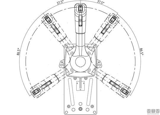 Dvodelna stranska montaža krmilnega vzvoda za plin, prestavo in nadzor trim funkcij za zunanje motorje in zvene pogone. Uporablja kontrolne kable C2 / C8 / C33 / MACHZero. Kabel C5 se lahko poveže s kompletom K35 (4620035). Z opcionalnim varnostnim stikalom X12 (4620112) je mogoče motor zagnati le pri izklopljenem menjalniku. Opremljen je s pozitivno blokado v nevtrali, da prepreči nenamerno vključitev prestave.