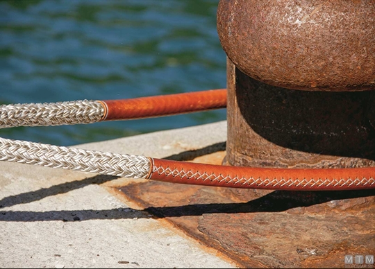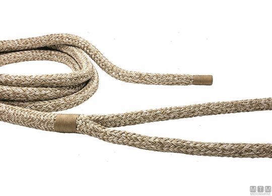 Pripravljena za uporabo sidrna vrv z ročno spojeno, zašito in zaključeno mehko zanko. Dobavljena z ročno všitim in zaključenim pokrovom očesa iz morske usnja ali brez pokrova. Tudi končni terminal je ročno dokončan in zašit, da se preprečijo nepravilnosti. Močna in mehka, narejena iz 16 pletenih visokotežnostnih poliestrskih vlaken, z maksimalno odpornostjo na obrabo ovoja. Nepotovna.daN= pretržna moč v kg
