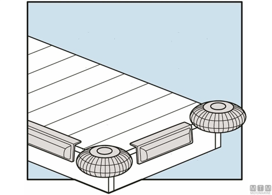 Zaščita kolesnih PVC zaščitnikov za doke. Omogoča gladko prehajanje čolnov med privezovanjem. Oporni zatič ni vključen. Prilagodljiva luknja za zatiče 1040 mm.