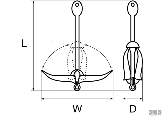 Zložljivo sidro iz nerjavečega jekla.↵ Za: skale - kamni - pesek.↵ Pogosto se uporablja kot sekundarno sidro.