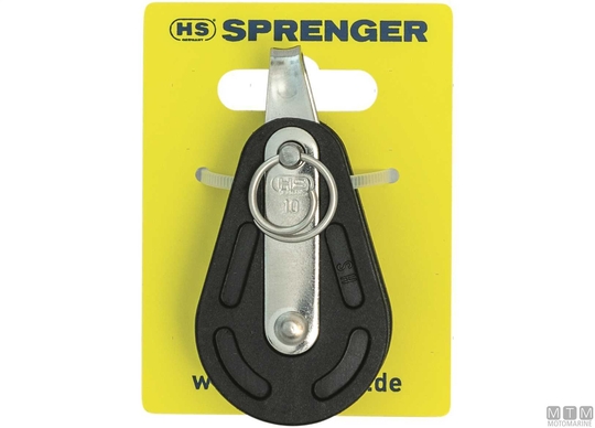 Kroglični ležaji HS bloki za vrvi do 10 mm.↵Kroglični ležaji: Nerjaveče jeklo↵Premer škripca 36 mm: UV odporna Hi-Q plastika↵Ličnice: UV odporna Hi-Q plastika in S/Jeklene trakovi↵Pretržna obremenitev: 850 kg.