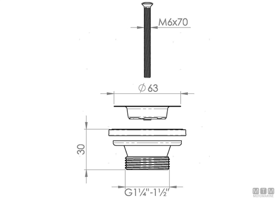 Ravni odtok umivalnika za umivalnik, tuš kadi, kokpit in servisne odtočnike. Z navojnim izpušnim izhodom, premer luknje od 39 56 mm.