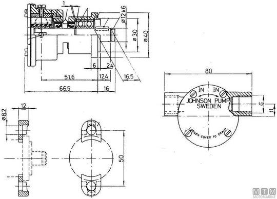 Bronze body Neoprene impeller cooling pump.↵ Johnson ref 10-35187-4↵ Farymann Diesel ref 538.014.1↵Standard assembly production for Farymann Diesel K34 engines